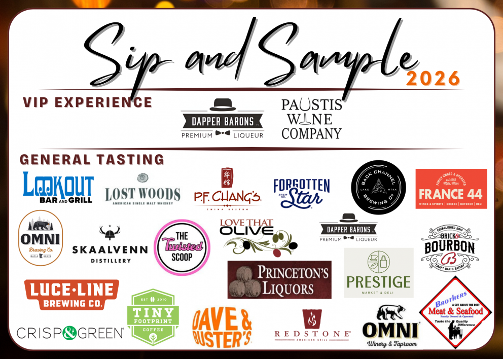 - Winners may pick up their items before leaving the Sip and Sample event.